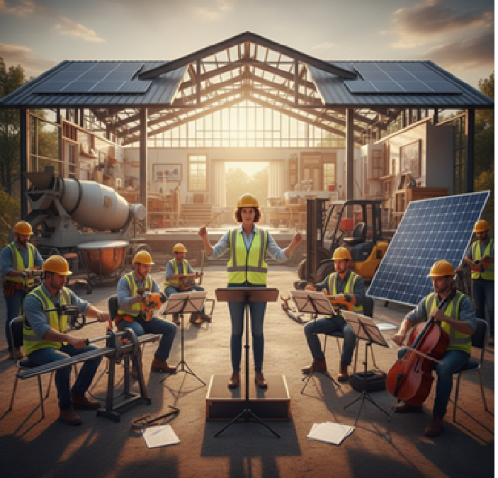 Scheduling & Timing: Every project has a sequence. We ensure that framers, electricians, solar installers, and steel crews all arrive at the right time, guaranteeing nothing stalls.